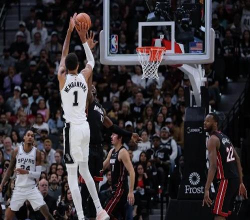 依靠着前三节的强势发挥,马刺带着15分领先优势进入末节。然而热火随后发动反击,在第四节以17-1的攻势开局,在比赛还剩七分钟时重新拿回领先。但随后马刺重整旗鼓,瓦塞尔和文班亚马在比赛最后四分钟时连续命中三分抢回领先,以一波8-3的攻势结束比赛,保住了连胜纪录。