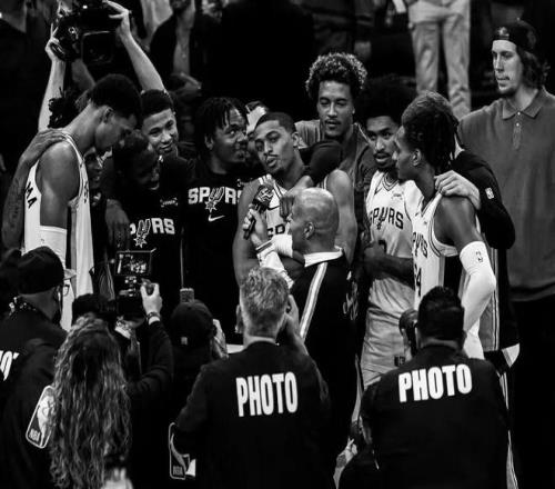 一瞬之间,狂欢席卷了马刺主场球馆,球迷们的反应仿佛就是赢了季后赛一样。球迷全员疯狂,球员挤在球场中央,文班亚马拿过话筒,发表了一段宣言: