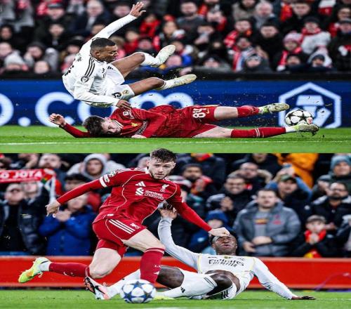 可谁想到,比赛一开打,红军就像打了“鸡血”一样的猛,率先对银河战舰后防发起一波又一波的攻击,先是维尔茨前场反抢成功,索博斯洛伊做球,麦卡利斯特迎球怒射,库尔图瓦表现出色化解险性。随后,利物浦的反压迫如潮水般汹涌,让皇马后场开始频繁掉链子。