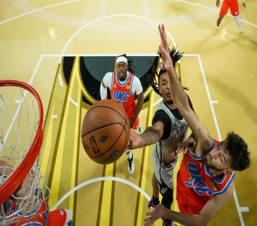 从进阶数据来看,两队的风格差异较为明显。马刺进攻效率位列联盟第6,二次进攻得分排名第9,擅长通过团队配合创造得分机会,场均命中13.6记三分排名联盟第15位;雷霆进攻效率排名联盟第5,防守效率稳居第1,三分火力更胜一筹(场均命中14.2记三分排名第7),但快攻得分(第21位)与二次进攻得分(倒数第2位)相对薄弱,更多依赖阵地战的高效输出。