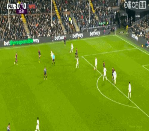 第45+5分钟,凯文造点,希门尼斯主罚点球命中,富勒姆1-0诺丁汉森林