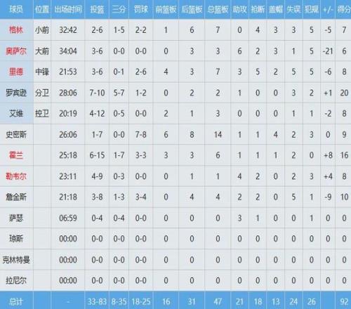 此役科林斯乃快船的最大赢球功臣,首发出战约37分钟,投篮14中9,其中三分球8中5,罚球4中2独揽25分7板1助4断4帽全面数据,正负值+19全场最高。快船队记Azarly对此表示,科林斯是有数据统计以来,首位单场25分&命中5记三分并送出4断4帽的球员。